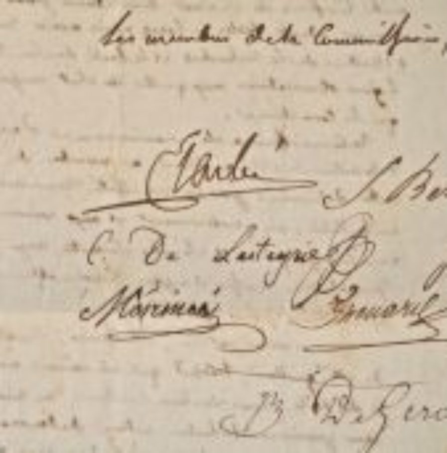 Joseph Marie Gérando (baron de) (Lyon, 1772/1842)Conclusions de la commission chargée de l'examen du travail d'Etienne Guillard de Senainville (1777/1835) sur "l'origine de la Société d'Encouragement, le but de son intention et le résultat de ses travaux depuis sa création". Le rapport est signé par : Louis Jacques Baron THENARD (1777/1857), chimiste ; Léonor MERIMEE (1757/1836), peintre et chimiste, père de Prosper ; comte Charles Philibert de LASTEYRIE DU SAILLANT (1759/1849), savant fondateur du premier établissement lithographique à Paris ; Joseph BERARD (1763/1843), mathématicien ; Louis Augustin Guillaume BOSC D'ANTIC (1759/1828), naturaliste ; Joseph-Marie baron de GERANDO (1772/1842), philosophe et publiciste + un autre non identifié. Ils préconisent d'imprimer cette notice à 2000 exemplaires.