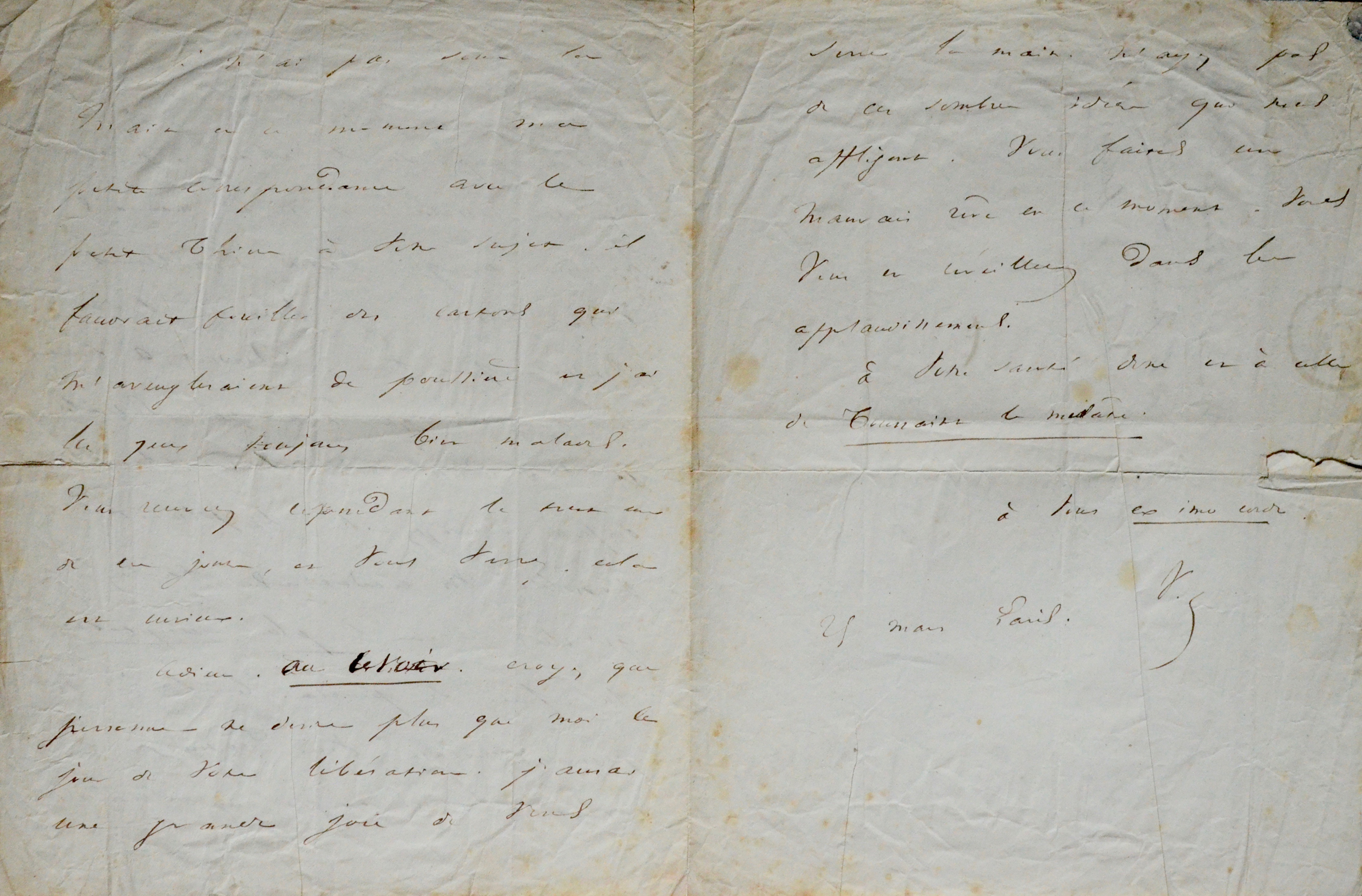 Victor Hugo (Besançon, 1802/1885)Belle lettre de Victor Hugo à son ami Antony Thouret, alors emprisonné à la maison d’arrêt de Saint-Waast, à Douai.