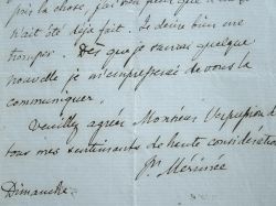 Prosper Mérimée rend compte de ses démarches. «Je n'ai pu faire votre commission que hier samedi. A la façon dont on a pris la chose, j'ai bien peur que le choix n'ait été déjà fait. Je désire bien me tromper. Dès que je saurai quelques nouvelles, je m'empresserai de vous la communiquer [...]».