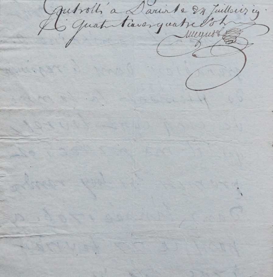 Mention d'une autre main à l'intérieur du double feuillet : "Contrôlé à Paris le 24 juillet 1719. Quatre livres quatre sols [...]".