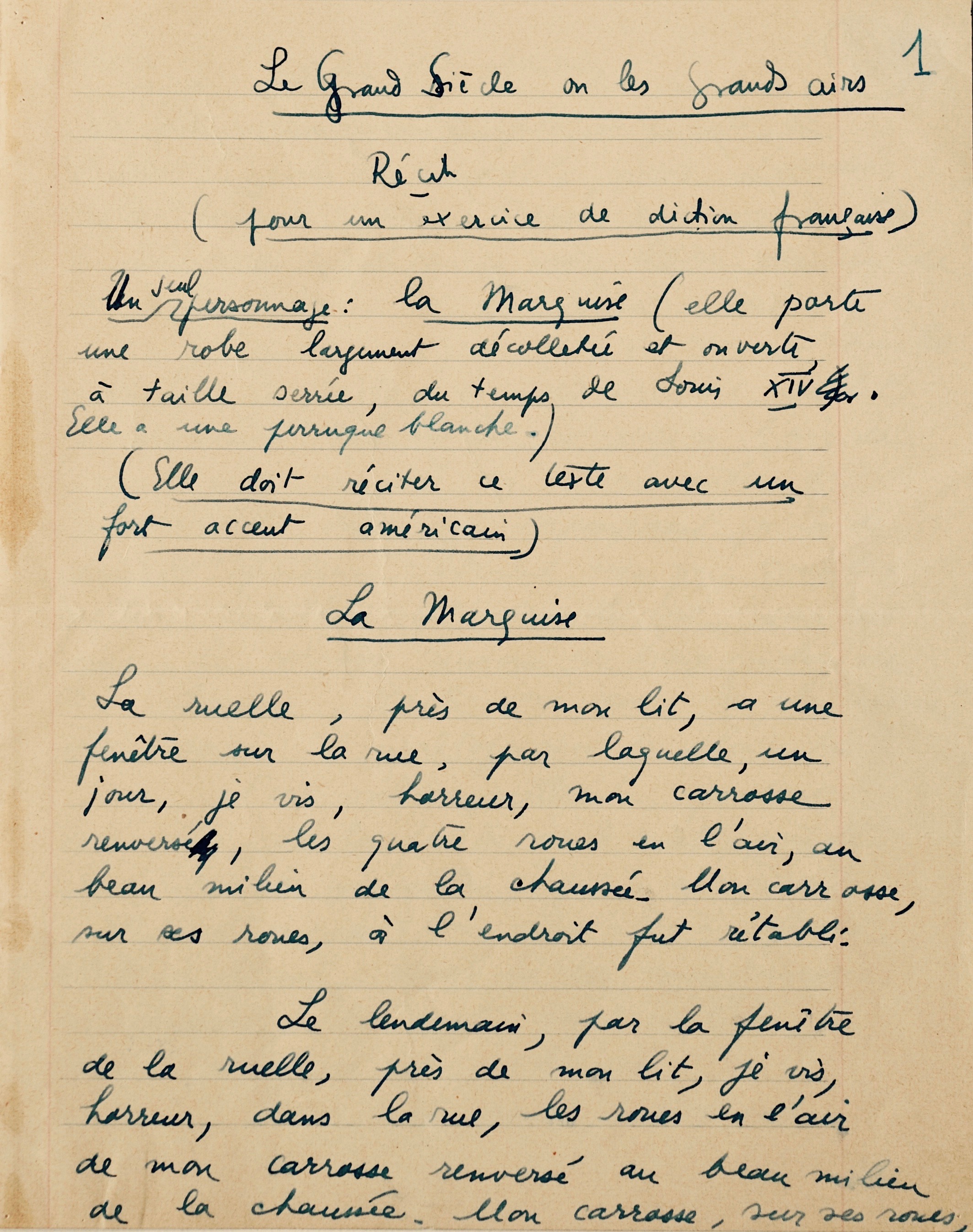 Eugène Ionesco (Slatina, 1909/1994)Amusant exercice de diction d'Ionesco, publié dans la Pléiade et intitulé : "Le Grand Siècle ou les Grands airs - Récit - (pour un exercice de diction française).