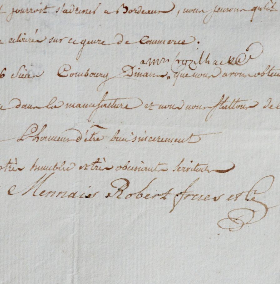 Citons la première lettre : « Nous n’avons point ici de patates en quantité, il s’en cultive de différentes espèces parmi lesquelles une mérite la préférence sous tous les rapports. Nous l’avons fait venir d’Irlande directement. Nous l’avons cultivée dans notre jardin l’année dernière, et comme différentes personnes nous en ont demandé pour multiplier l’espèce, nous ne pouvons vous en envoyer qu’une petite quantité, et nous y joindrons une bouteille de moutarde anglaise […]. Le Louis Marie est part ce matin avec un vent favorable et nous en avons profité pour y charger 12 balles de Dinan au prix de 21s. 9d. […]. Vous me demandez si les nobles de notre ville ont agi volontairement ou s’ils ont été forcés de signer la déclaration qu’ils ont souscrite. Le fait est que quelques membres du Conseil de notre ville avaient proposé un arrêté, d’après lequel les nobles auraient pu dire qu’ils avaient été forcés de donner leur signature. Le fait est encore qu’aucun d’eux ne peut dire qu’il ait été forcé et que réellement l’arrêté dont nous venons de vous parler n’a point eu lieu, qu’en conséquence leur signature est libre et volontaire. Il ne nous appartient pas de scruter le cœur humain, ni les intentions, mais d’après cela de deux choses l’une, ou les nobles l’ont fait de bonne foi, dès lors nous devons les regarder comme nos frères, autrement, on ne pourrait regarder leur action que comme une trahison […] ».