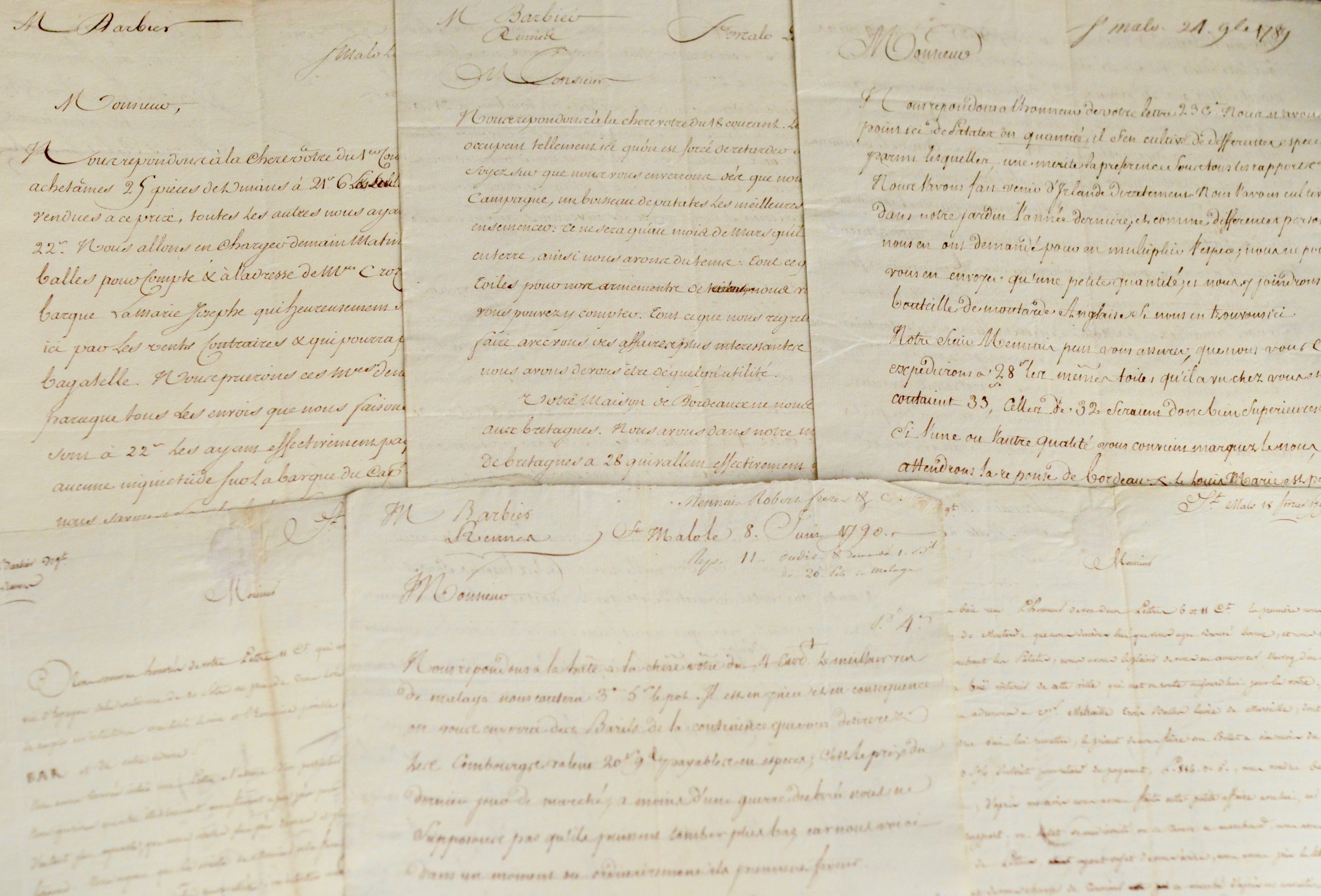 Belle et intéressante correspondance sur la culture et commerce de la pomme de terre, le chargement et l’expédition de navires, la révolution à Saint-Malo.