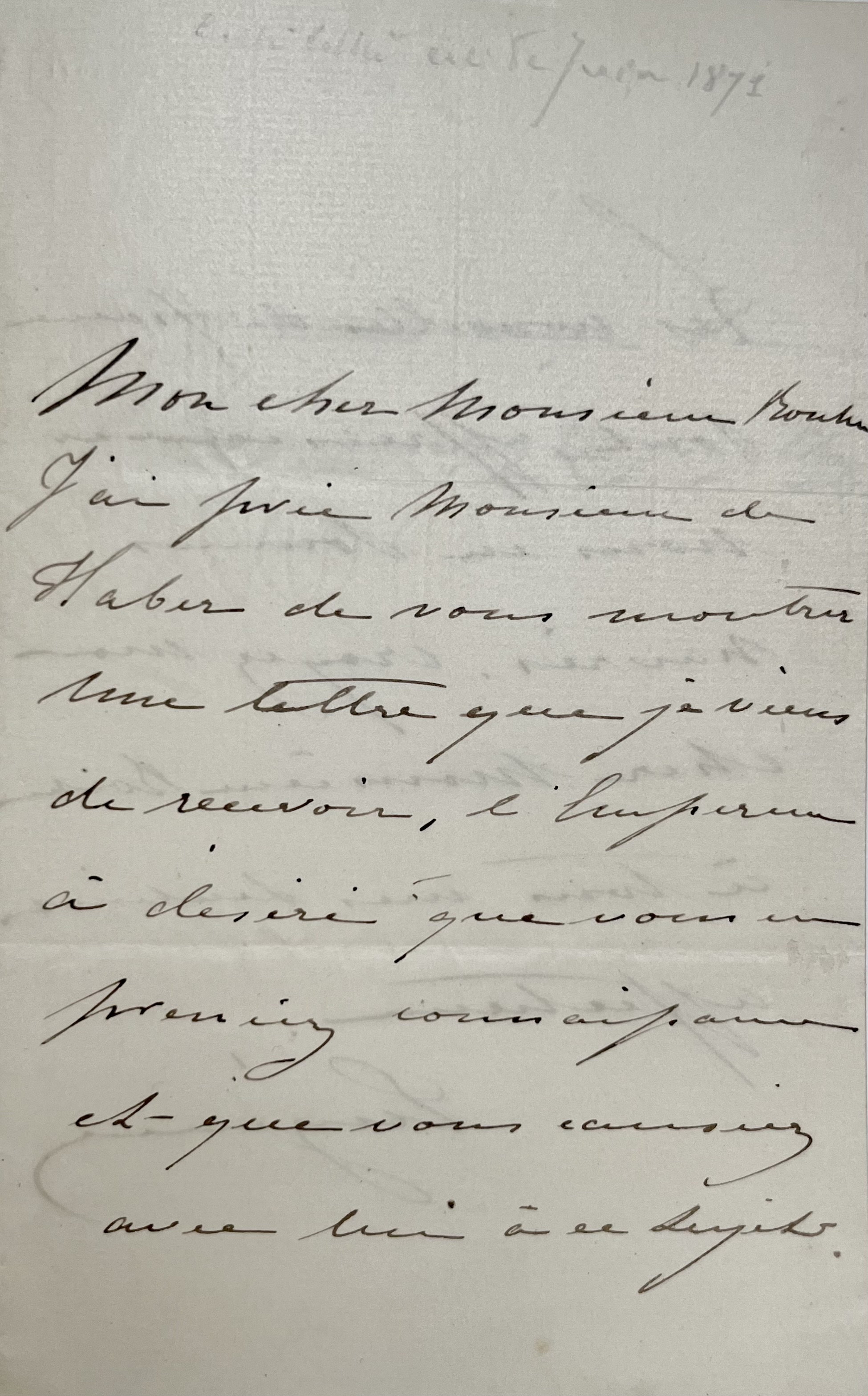 L'Impératrice Eugénie transmet à Eugène Rouher une lettre du banquier berlinois Haber dont l’Empereur souhaite qu’il prenne connaissance.