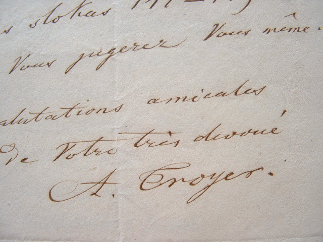 «J'ai parcouru tout le texte de six premiers livres du Râdjataranginî pour chercher les passages analogues à celui que vous citez, et je n'ai rien trouvé à l'égard des éléphants guerriers que les slokas 147-149 vol. II p. 138, dont vous jugerez vous-même». [Antony Troyer a traduit et édité "Râdjataranginî, histoire des rois du Kachmir", en 3 vol. in-8, de 1840 à 1852].