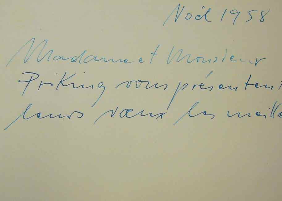 Au dos d'une carte reproduisant l'une de ses oeuvres "Fleurs de Magnolia", Franz Priking adresse ses voeux. "Madame et monsieur Priking vous présentent leurs voeux les meilleurs".