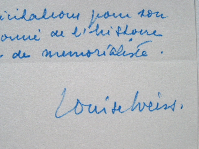 «A Jacques Péchon, avec mes félicitations pour son amour passionné de l'histoire et mes voeux de mémorialiste».
