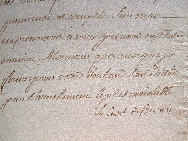 De Rome, le cardinal de Bernis adresse ses voeux. «Et comptés sur mon empressement à vous prouver en toute occasion, monsieur, que ceux que je forme pour votre bonheur sont dictés par l'attachement le plus inviolable».