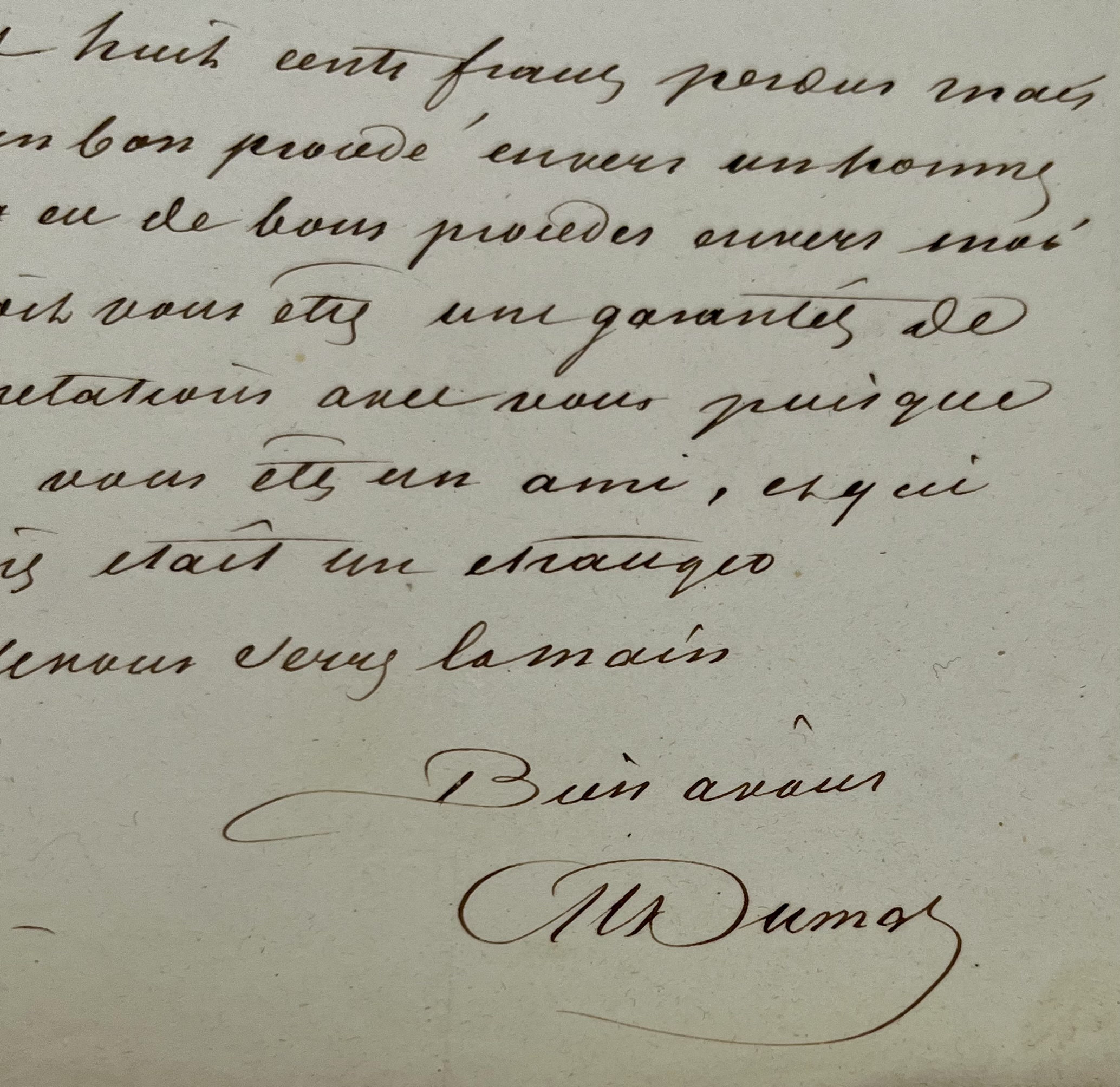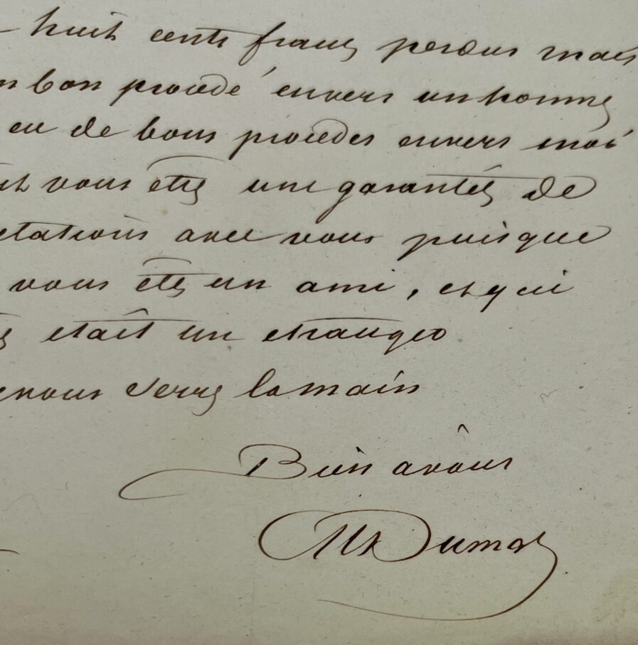 Lettre d’Alexandre Dumas Père adressée à son ami et éditeur Théodore Boulé