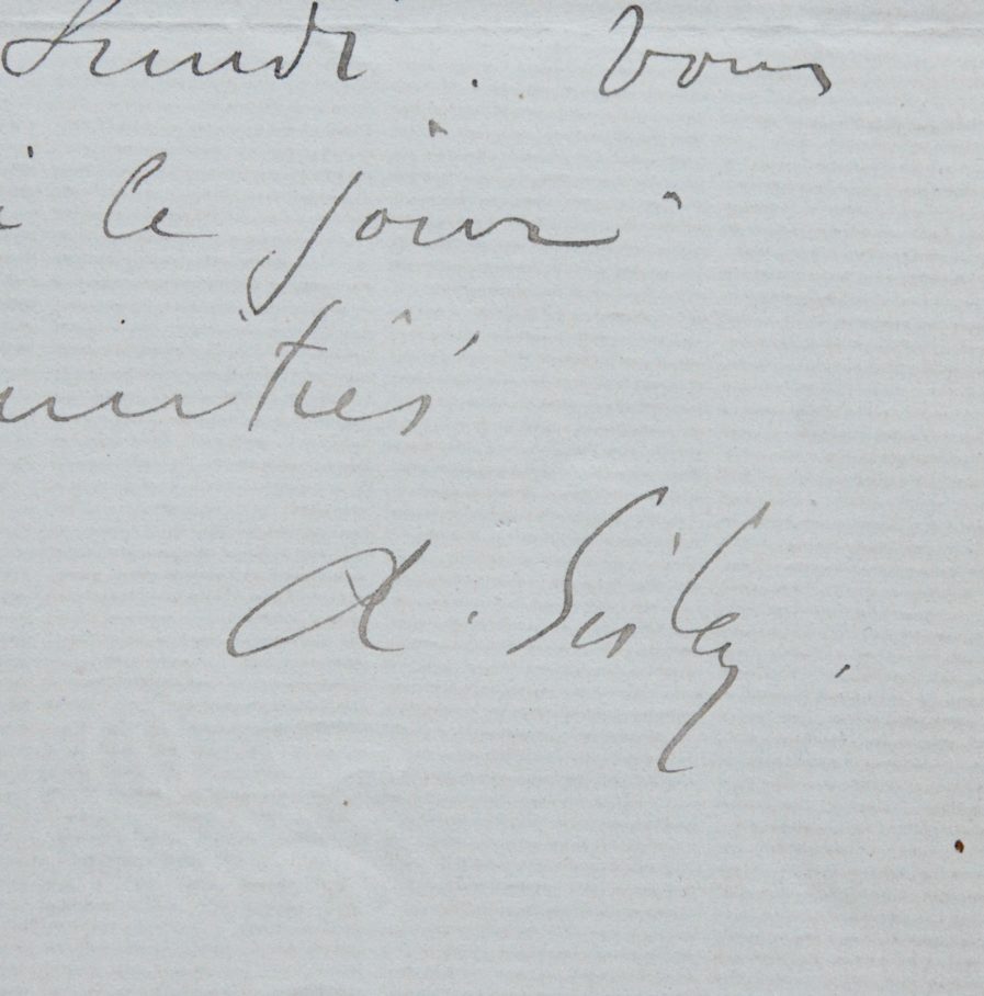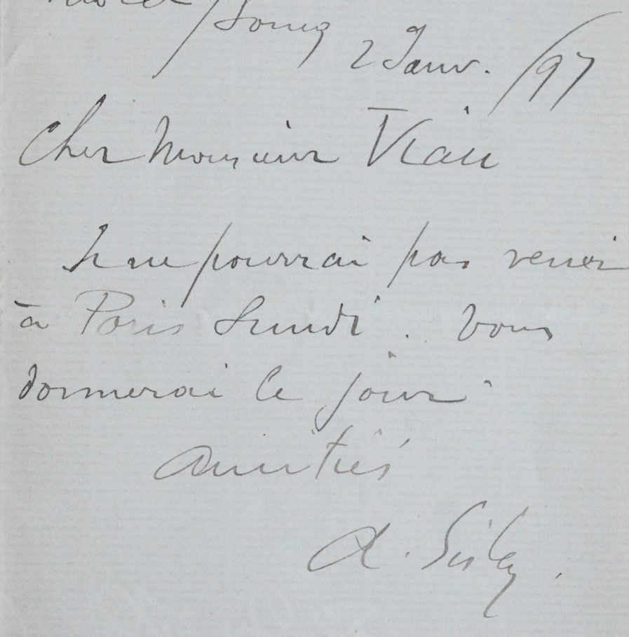 Billet d'Alfred Sisley, adressée au collectionneur d'art George Viau (.