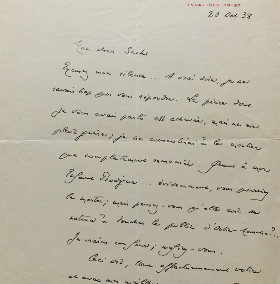 Lettre d’André Gide à Maurice Sachs