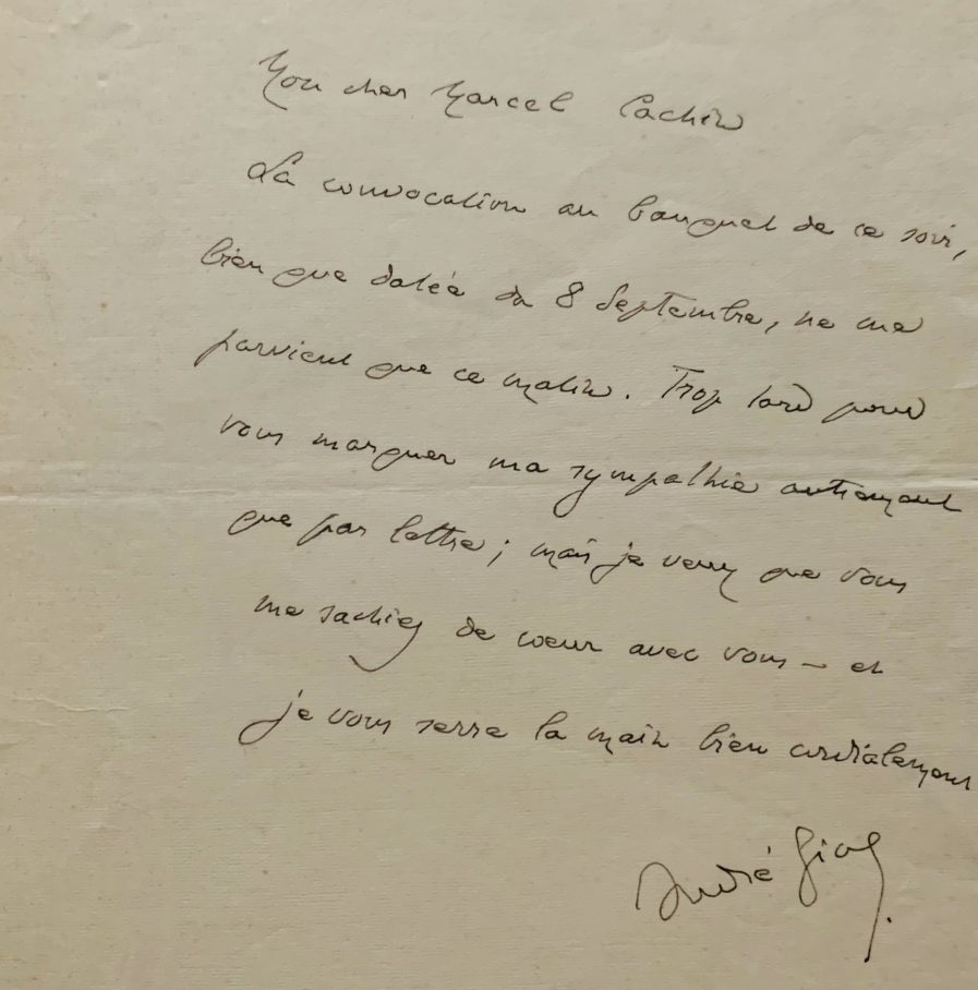 Lettre d’André Gide au directeur de l’Humanité, Marcel Cachin