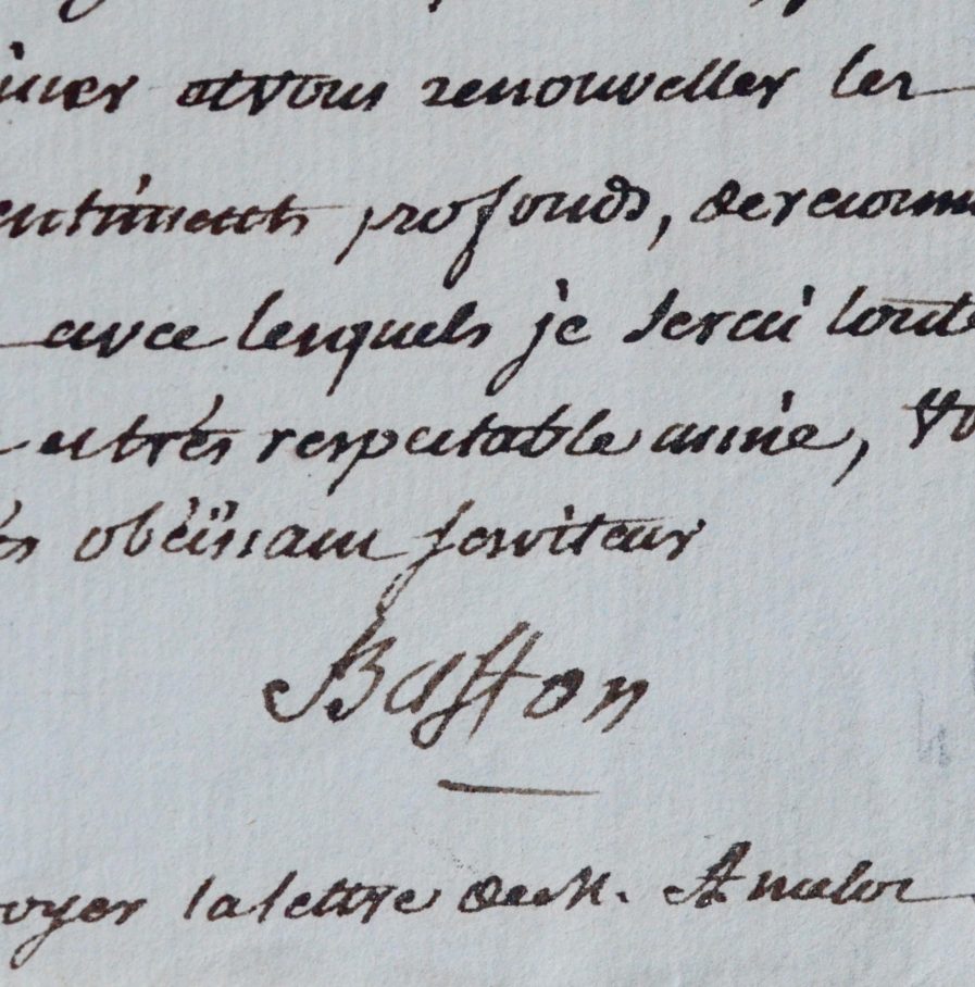Lettre de Buffon adressée à Mme Necker depuis le Jardin du Roi
