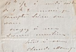 Lettre de jeunesse de Claude Monet, au défenseur des impressionnistes, Zacharie Astruc. « Mon cher ami, vous me dites bien que vous viendrez demain mardi rue Moncey. Mais à quelle heure, vous ne le dites pas.