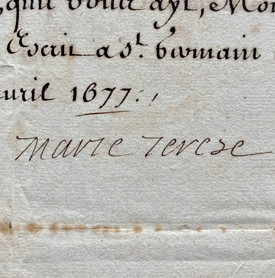 Jolie lettre de la reine Marie-Thérèse d'Autriche au cardinal Lazzaro Pallavicino, légat du pape. Elle est contresignée par Colbert.