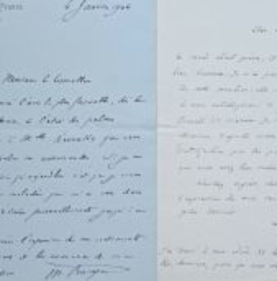 Dans cette lettre, l'Ambassadeur de France à Saint-Pétersbourg Louis Bompard confirme à l'économiste Alfred de Foville son soutien : «J'ai donné l'avis le plus favorable, dès le 23 décembre denier, à l'octroi des palmes académiques à Mlle Kaucuka que vous avez bien voulu me recommander.» On joint une lettre autographe signée et datée du 27 juillet 1896 (1 p.), au même, concernant la réussite à un examen d'une connaissance commune.