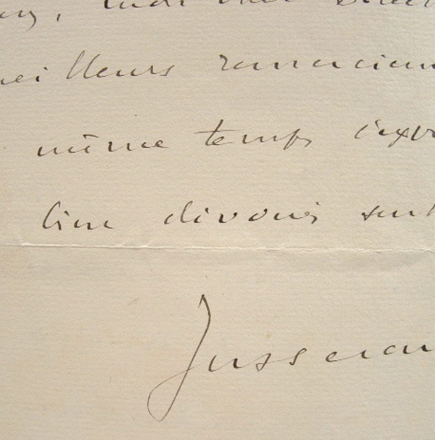 Remerciements pour l'envoi d'une copie. «C'est bien le document que je souhaitais avoir et qui me sera fort utile. Merci pour la mention des deux autres, mais je peux m'en passer. Le disc. de Fontanes est dans ses oeuvres et je les ai [...]».