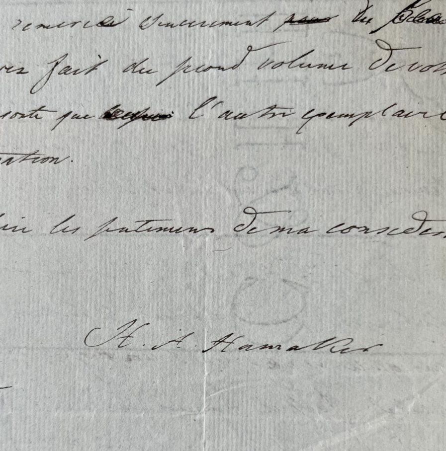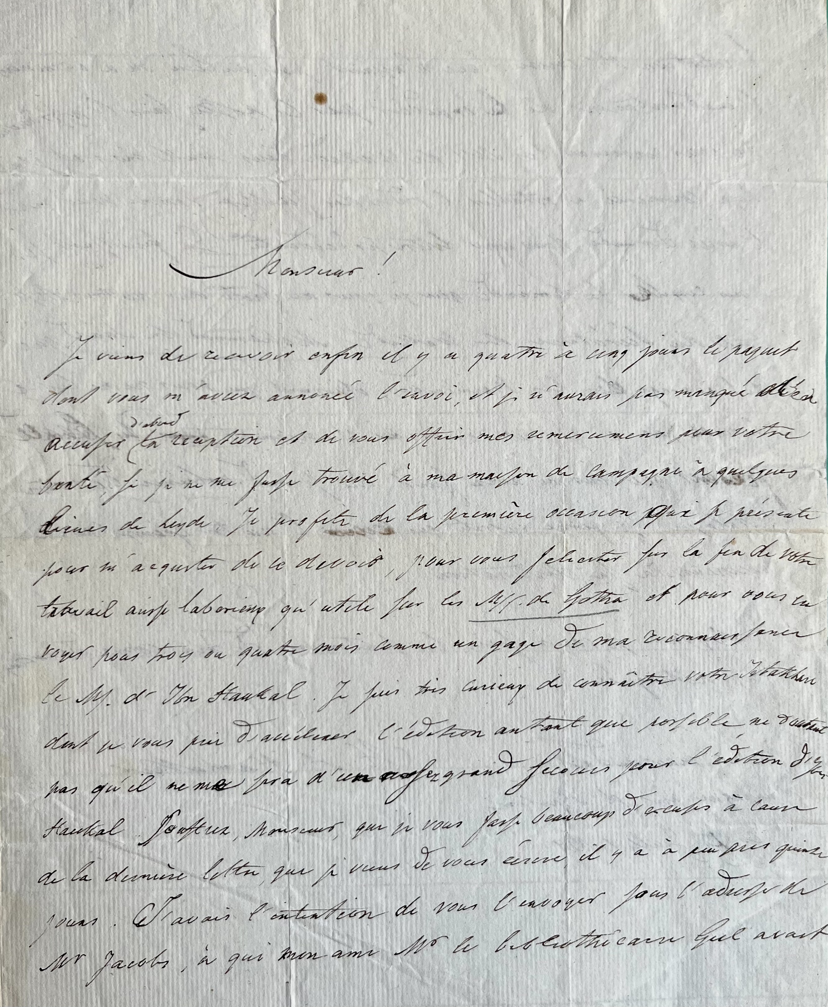 Lettre de l’orientaliste néerlandais Hendrik Arent Hamaker à son confrère Johann Heinrich Möller, à Gotha