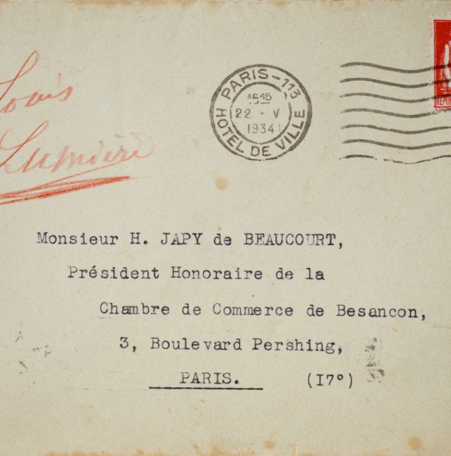 Lettre de Louis Lumière à Henri Japy de Beaumont