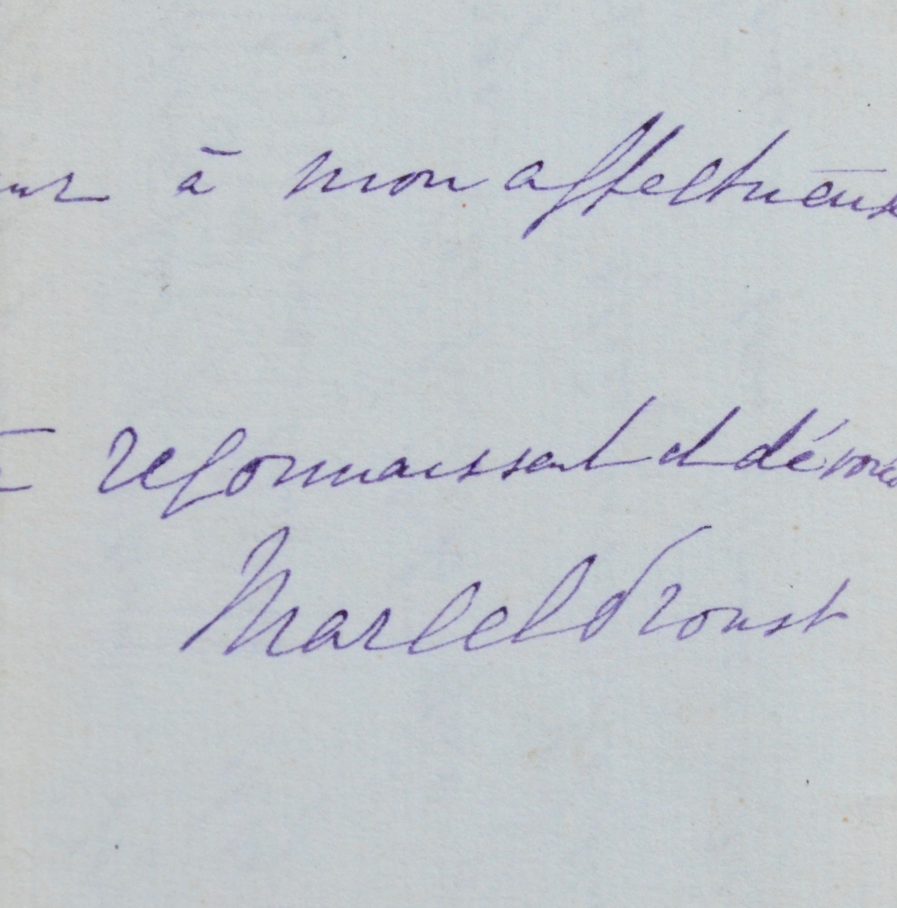 Marcel Proust (Paris, 1871/1922)Marcel Proust convie Montesquiou à « Je tiens, plus pour vous montrer le prix que j'attacherais à votre présence - que dans le dessein de vous faire venir à la Bodinière pour entendre des vers que vous n'avez que trop entendus - à vous dire que mercredi à 4h 1/2 au concert des oeuvres de [Reynaldo] Hahn, seront récitées, par votre merveilleuse [Marguerite] Moreno, mes Portraits de Peintres [pièces pour piano d’après les poésies de Proust. Paris, Heugel & Cie, 1896]. Si comme j'en suis sur, vous ne désirez pas y venir, soyez assez bon pour laisser chez votre concierge ces billets que je vous envoie après avoir hésité longtemps à vous donner avec cette preuve de déférence cette marque d'indiscrétion, et de prétention à déranger un poète pour si peu de poésie à qui il est déjà venu un soir, en si grand dérangement apporter son indulgence. Je ne pense pas qu'ils puissent offrir plus d'intérêt à Monsieur d'Yturri qui est pourtant dans ma pensée le titulaire du second billet [...] ». [Gabriel Yturri (1860-1905) était le secrétaire de Proust et le bon ami de Montesquiou].