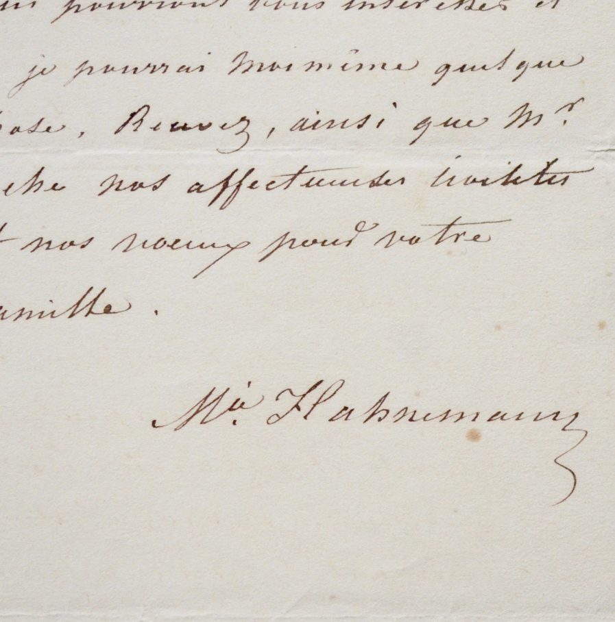 Mélanie Hahnemann (1800/1878)Lettre de Mélanie Hahnemann, seconde épouse de Samuel Hahnemann, père de l'homéopathie. Elle fut l'une des premières praticiennes à exercer cette science.