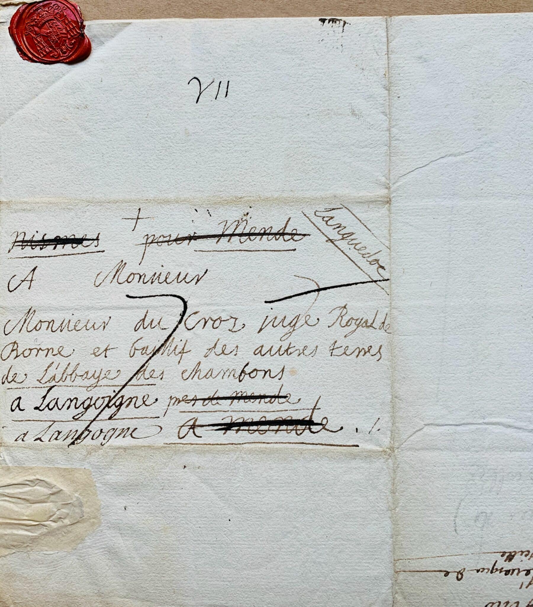 Henri de Belsunce (Château de La Force, 1670/1755)Mgr de Belsunce, évêque de Marseille, était aussi abbé de l'abbaye bénédictine des Chambons, en Lozère. Dans cette lettre, il s'adresse au juge royal et bailli de l'abbaye des Chambons, à Langogne.