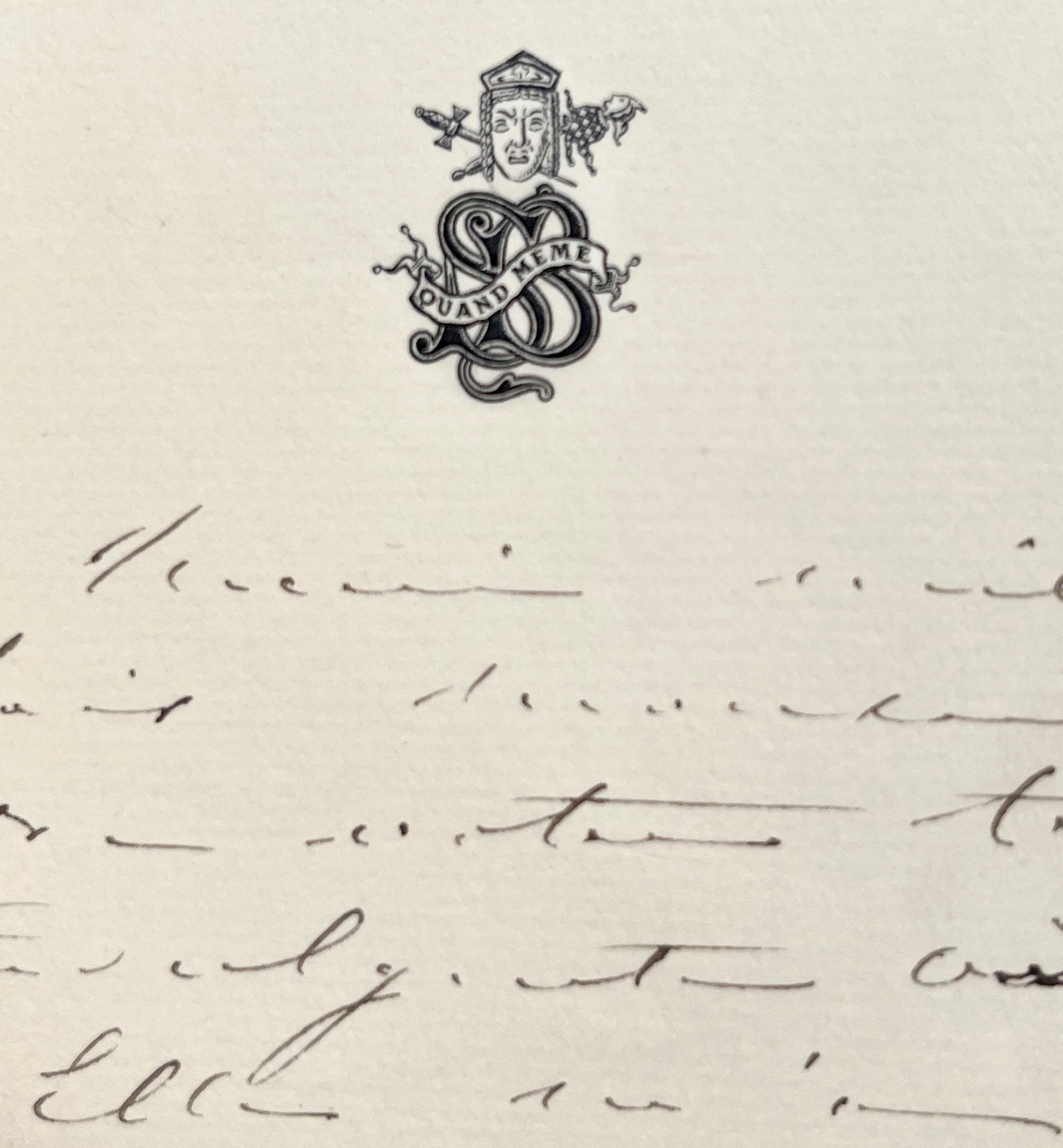 Papier de deuil. En-tête à son chiffre et sa devise "Quand même".
