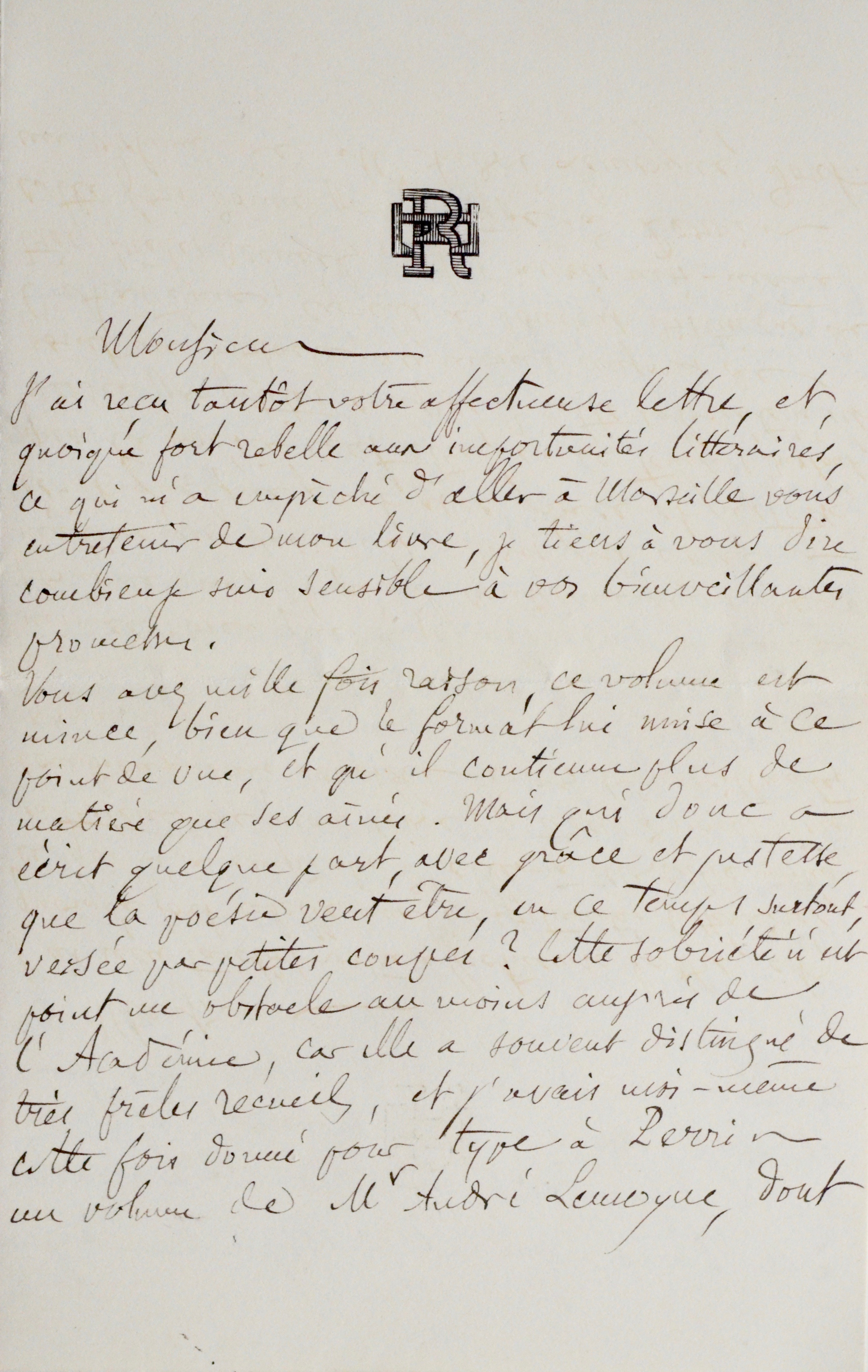 Lettre d’Eugène Rostand au poète Joseph Autran