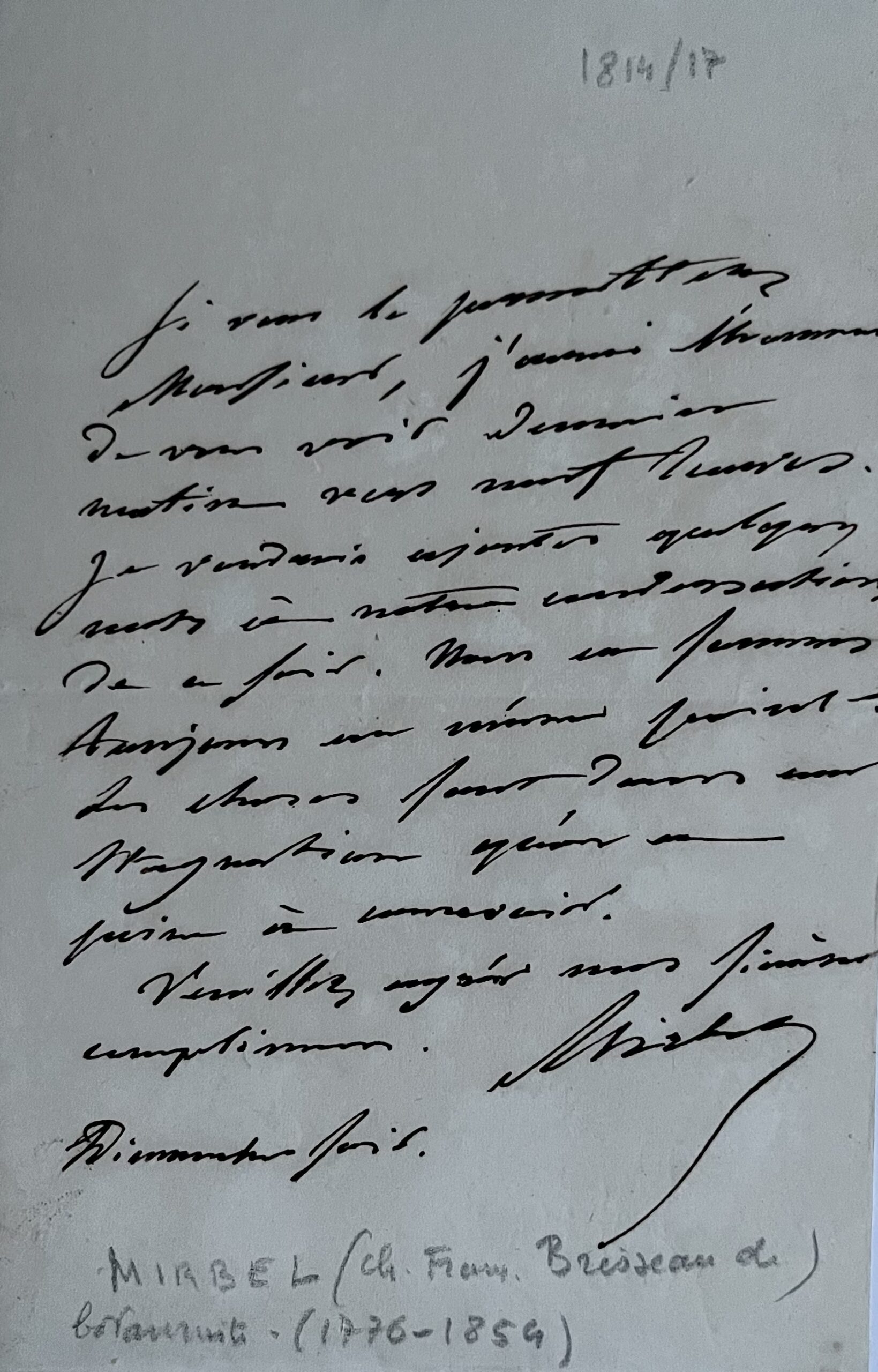 Lettre du botaniste Charles-François Brisseau de Mirbel