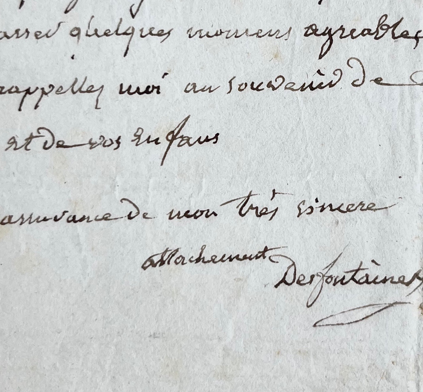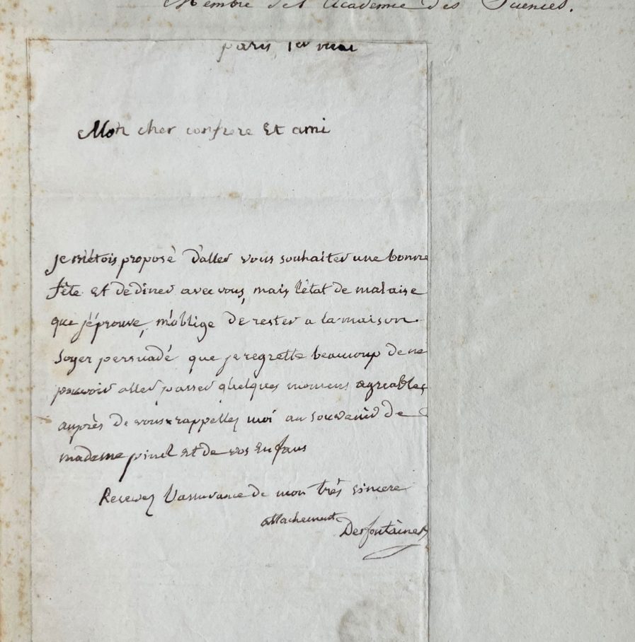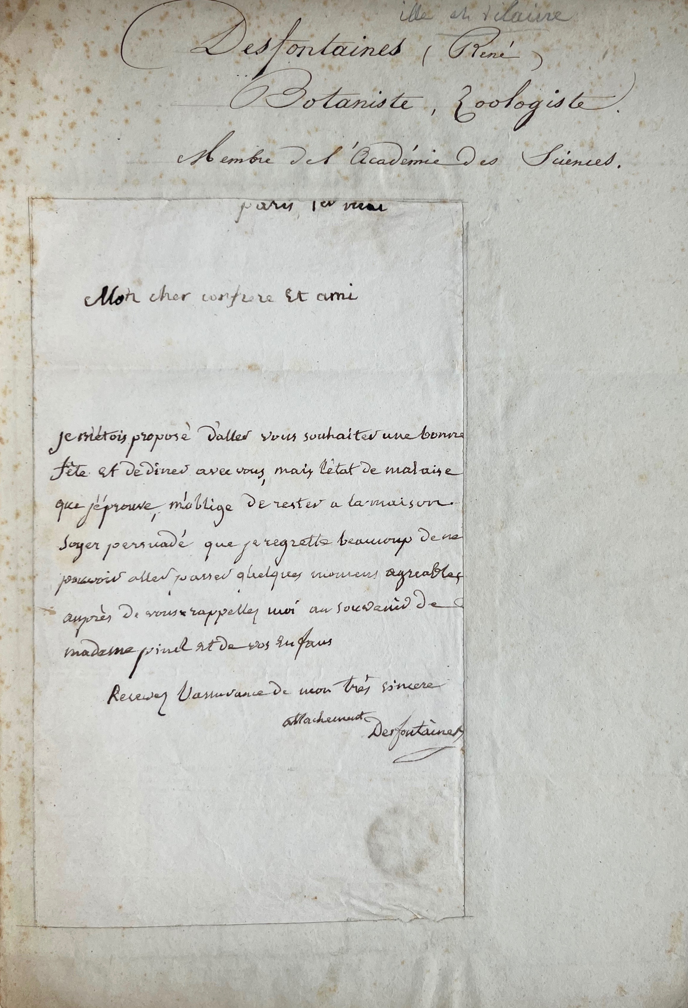 Lettre du botaniste René Louiche Desfontaines au médecin aliéniste Philippe Pinel