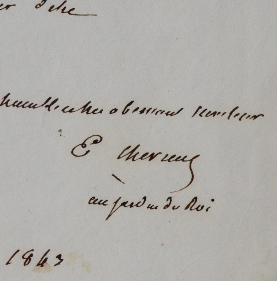 Chevreul demande un rendez-vous « […] J’aurais besoin de vous entretenir quelques instant de l’affaire dont j’ai eu l’honneur déjà de vous parler […] ».