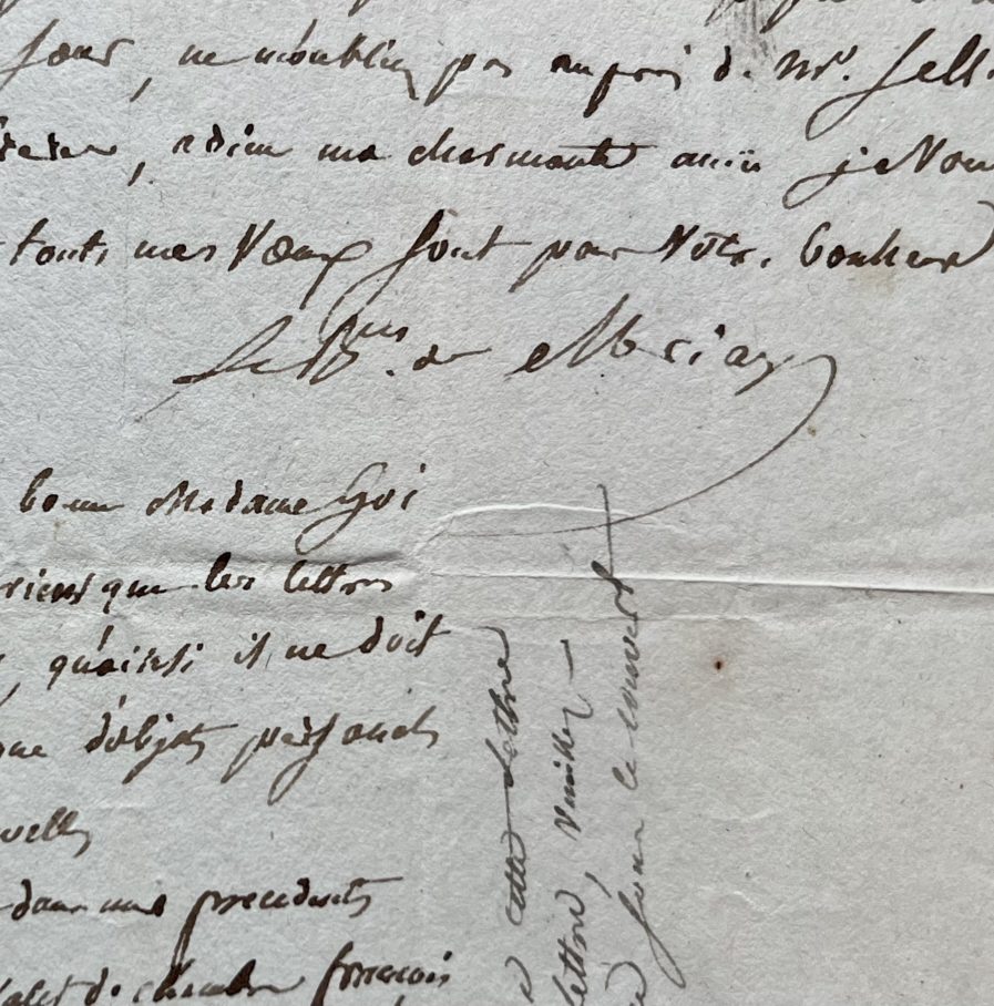 "[...] Mes blessures sont guéries, je sors depuis quelques jours, il y a ici fort bonne société, la noblesse est polie, et la ville d'Orell où je suis est une des principales de Russie ; ainsi sous ce rapport, je n'ai qu'à me féliciter d'avoir une pareille résidence ; il y a aux environs beaucoup de châteaux forts agréables, habits pour les seigneurs les plus distingués de l'empire, les fêtes s'y succèdent, les dames sont de la plus brillante éducation, quant au peuple il est ignorant et encore très moskovite, en général ce pays ci est fort curieux à voir et on le juge mal dans le reste de l'Europe ou plutôt on le connaît trop peu pour le juger [...]". Il donne des instructions pour transférer des fonds de Varsovie jusqu'à Petersbourg, demande des nouvelles de sa famille. Il ajoute : "je vous préviens que les lettres sont ouvertes et lues, qu'ainsi il ne doit y être question que d'objets personnels et nullement de nouvelles. Je vous ay écrit dans mes précédentes lettres relativement au valet de chambre françois qui étoit avec moi ; si ce drôle a l'effronterie de se présenter chez vous, il faut le chasser [...]".