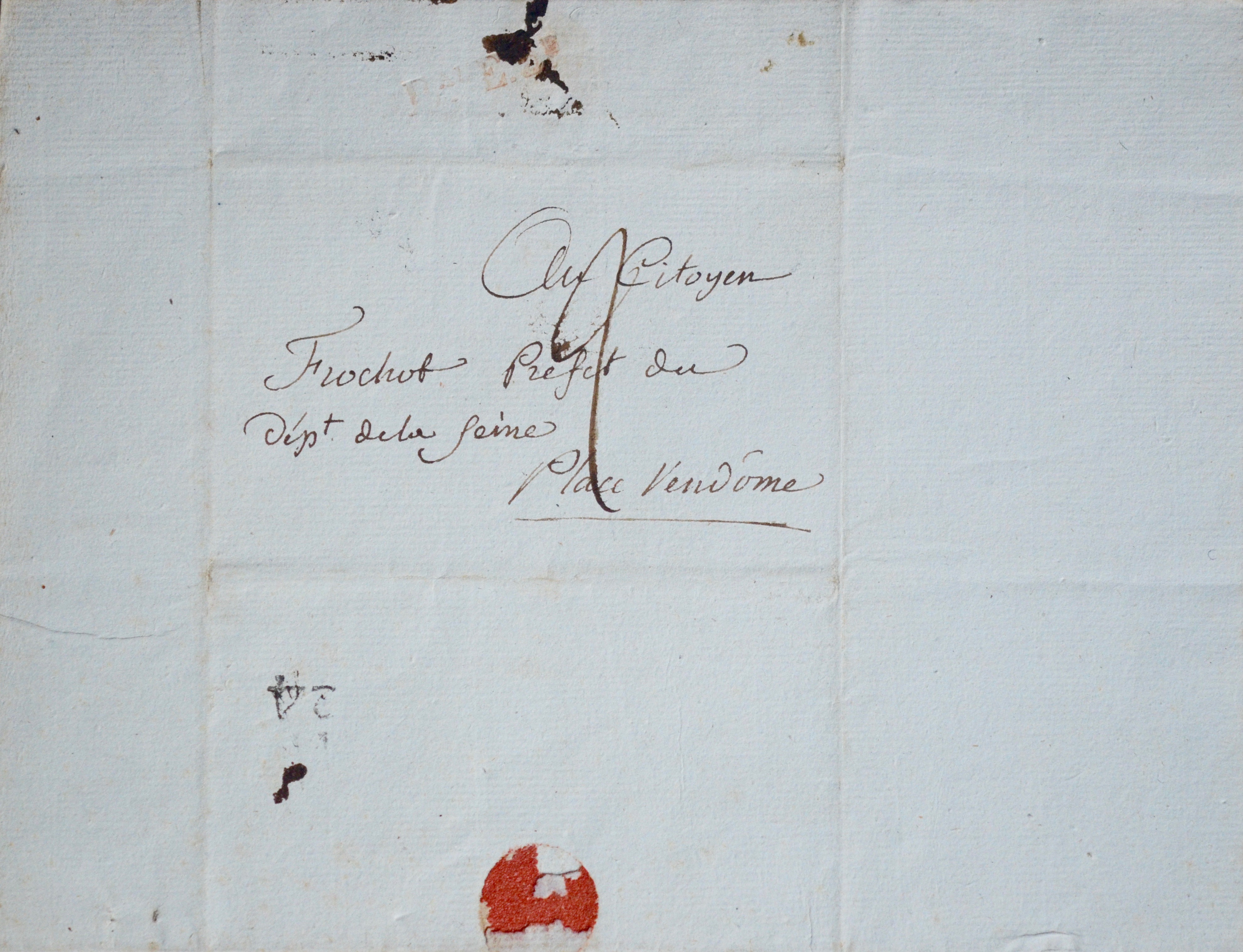 Lettre du célèbre mathématicien Adrien Legenre, adressée à Nicolas Frochot (1761-1828).