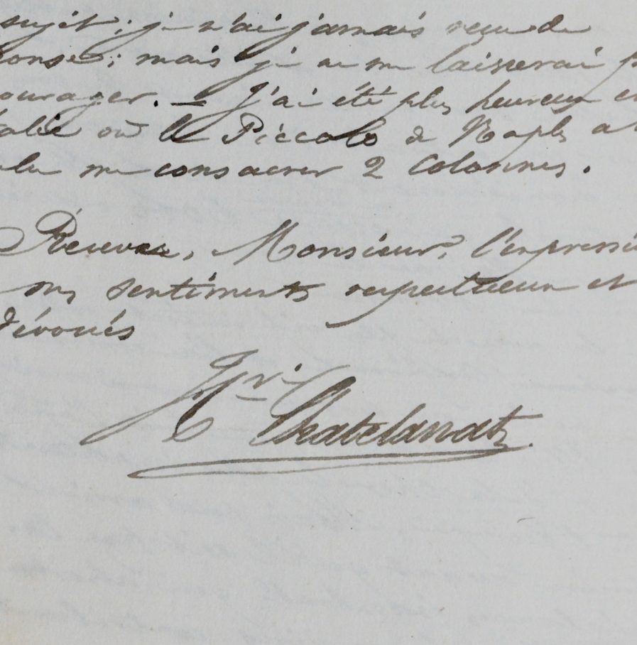 Henri Chatelanat (Nyon, 1822/1899)Henri Chatelanat envoie à Charles Lemonnier ses dernières publications et explique les raisons pour lesquelles il s'est refusé à faire partie de la Ligue Internationale de la Paix et de la liberté, malgré les invitations d'Adolphe Franck.