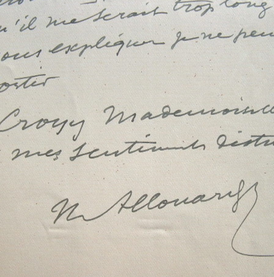 Lettre du peintre orientaliste Allouard.