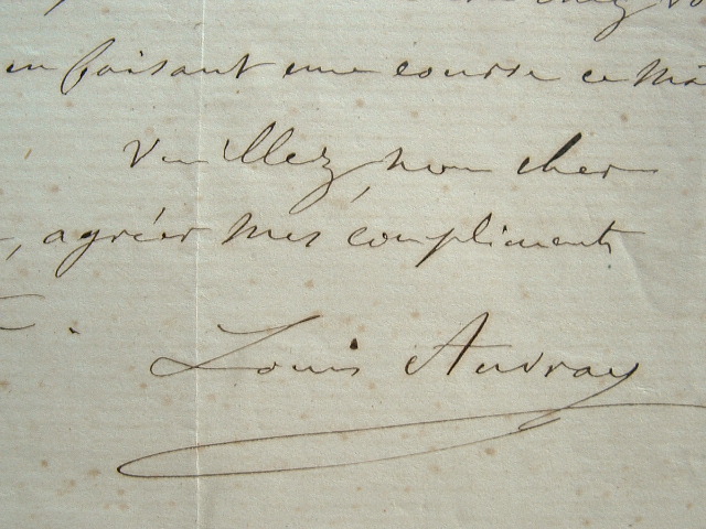 Lettre du sculpteur Louis Auvray.