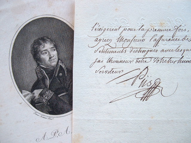 Auguste Piis (chevalier de) (Paris, 1755/1831)Chansonnier et poète à la plume pleine d'humour. Il a aussi été secrétaire interprète du comte d'Artois (1784) et secrétaire général de la police (1800). Co-fondateur, avec Barré, du théâtre de Vaudeville.