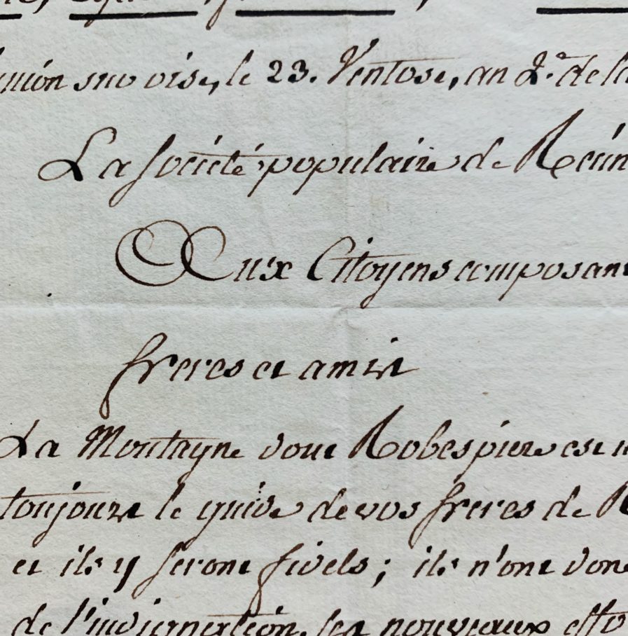 Lettre exaltée de soutien à Robespierre de la Société Populaire de « Réunion sur Oise » (Guise)