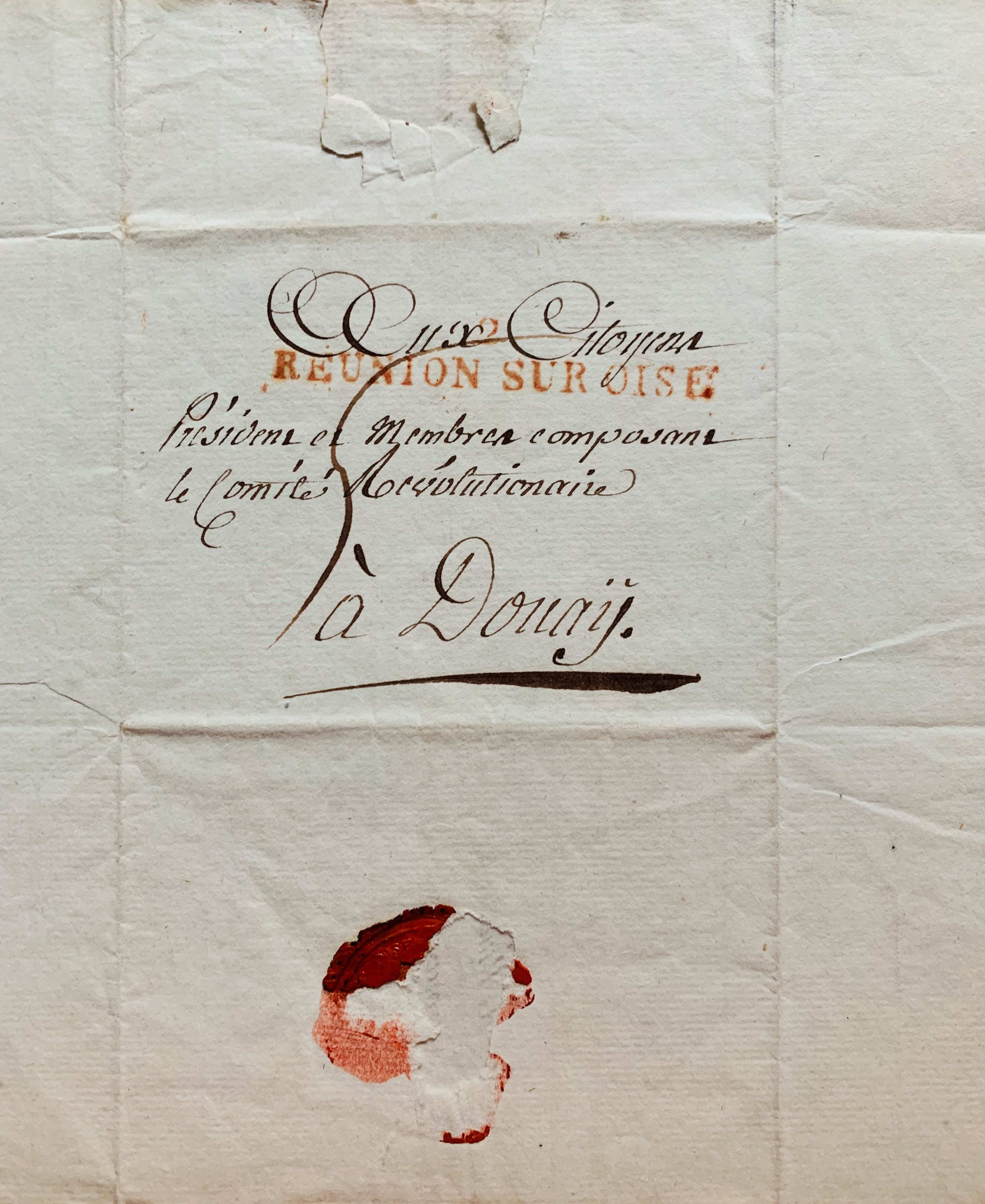 Elle est signée par 3 membres de la Société Populaire de "Réunion-sur-Oise" [nom révolutionnaire de Guise] : Lefebvre (président), Vieille et Delisle.