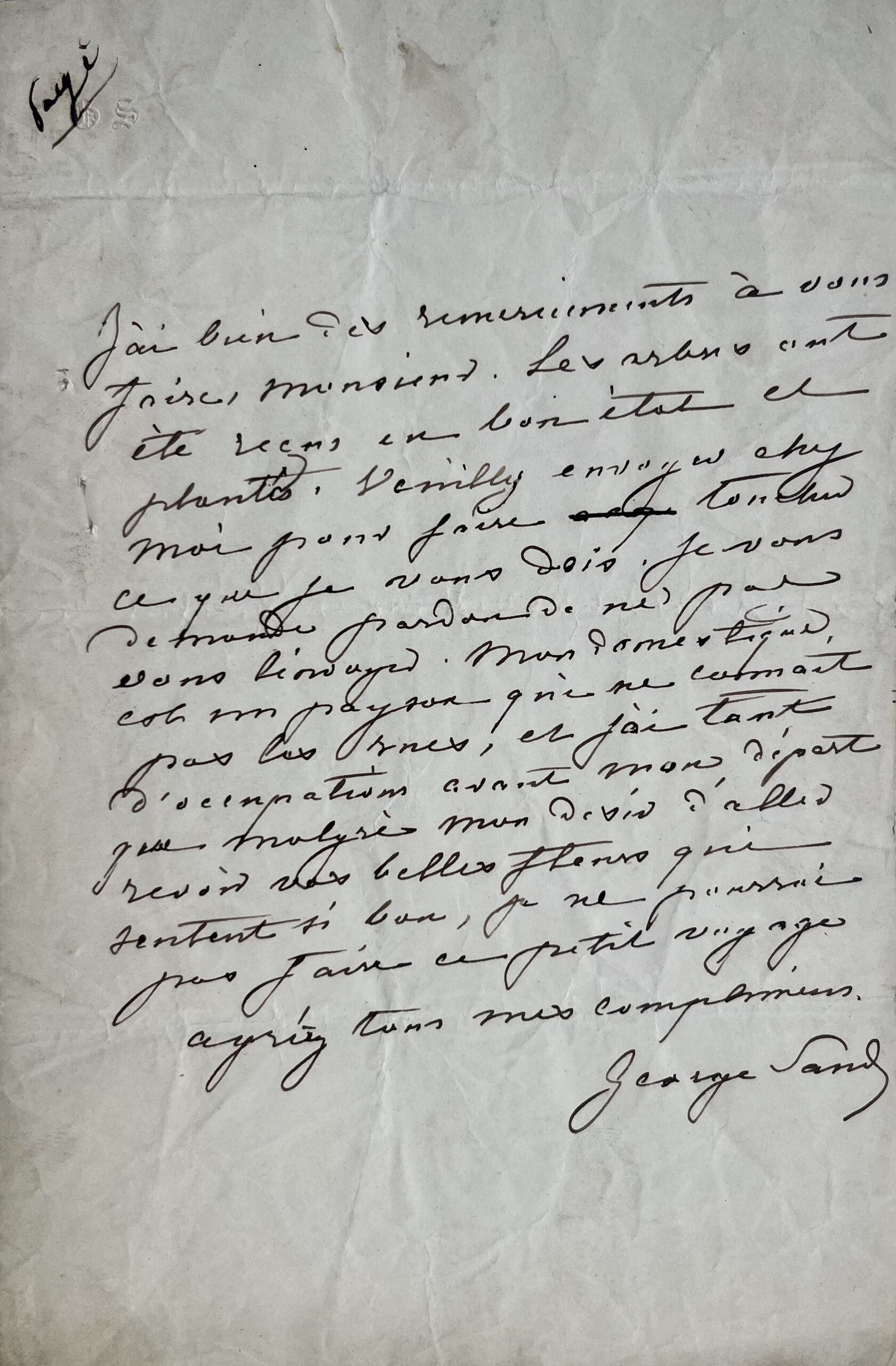 Lettre inédite de George Sand à son pépiniériste Louis-Claude Noisette, au sujet de plantations pour Nohant