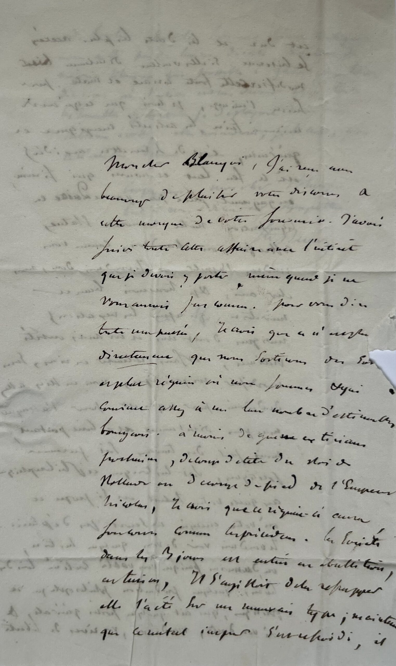 Belle lettre politique après l'établissement du gouvernement de Louis-Philippe et la condamnation de Blanqui.