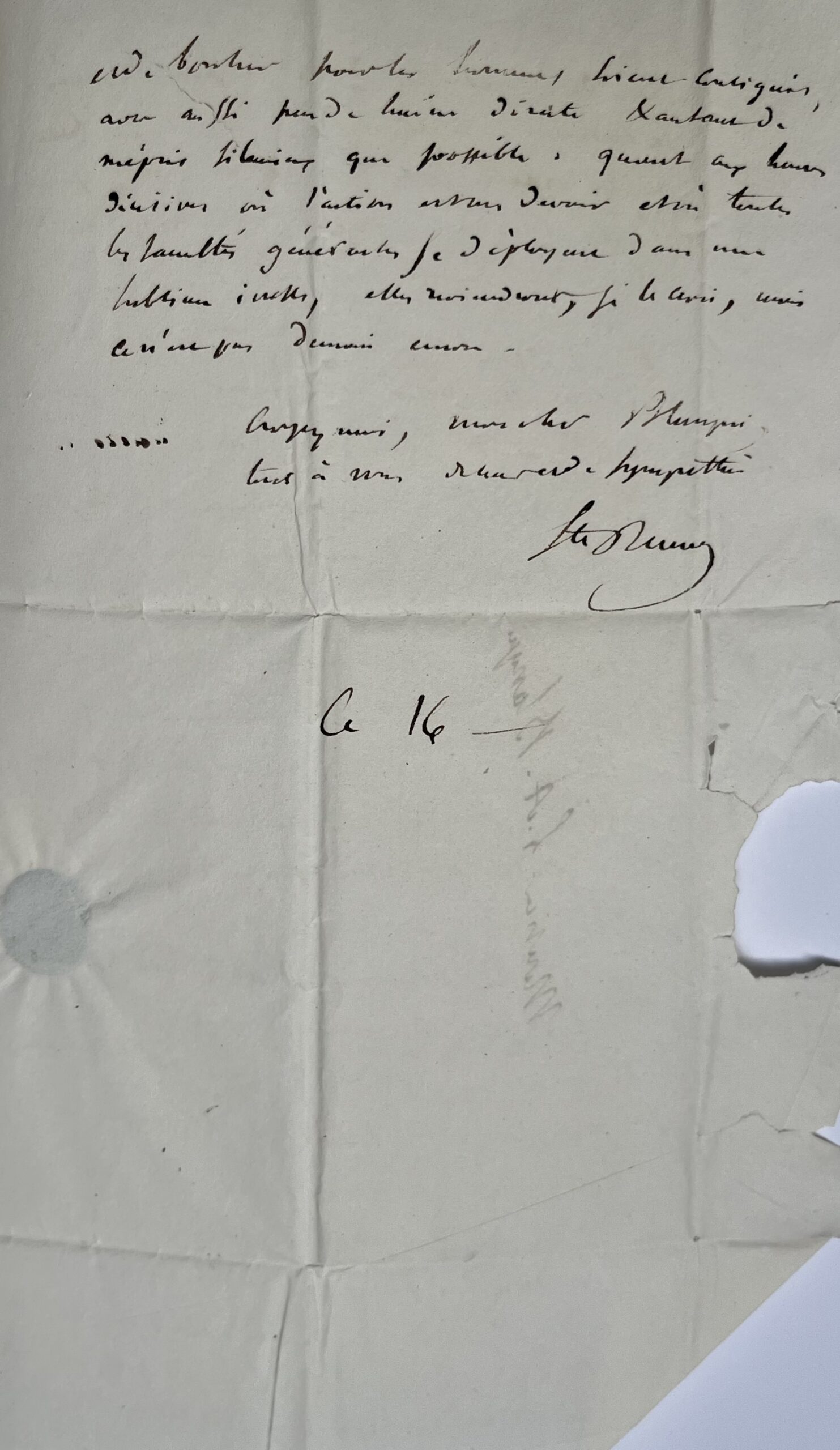 Date : « Ce 16 » [février 1832].