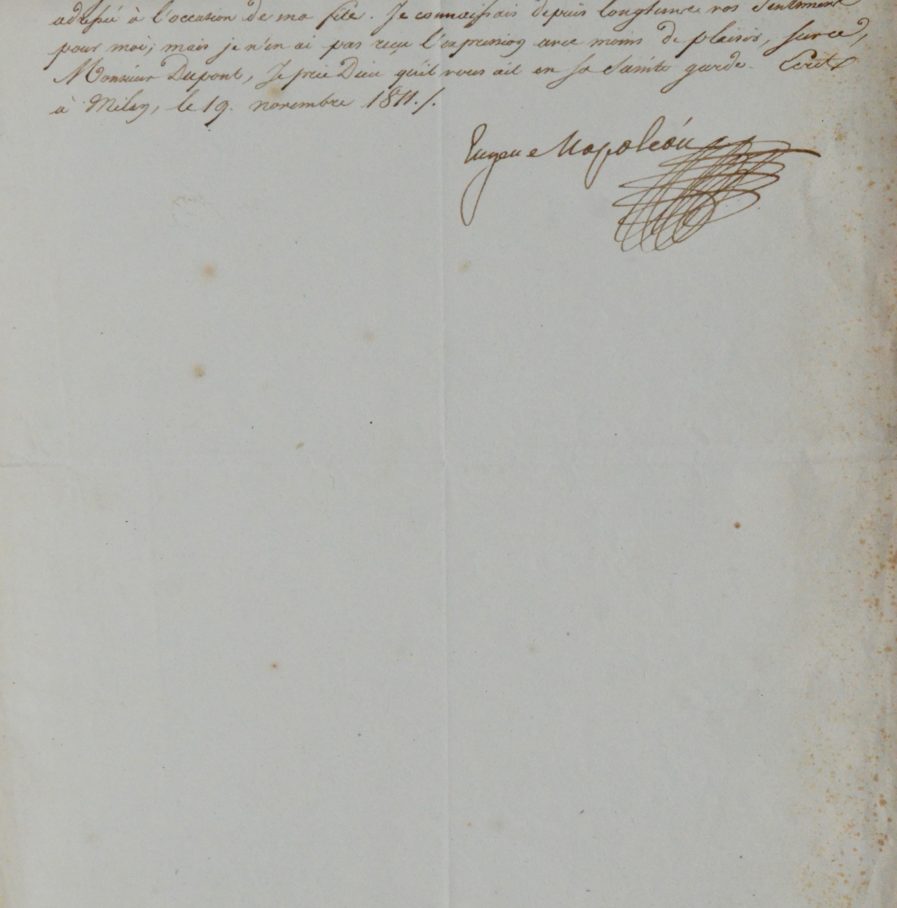 Lettre signée par Eugène de Beauharnais, depuis Milan, en 1811