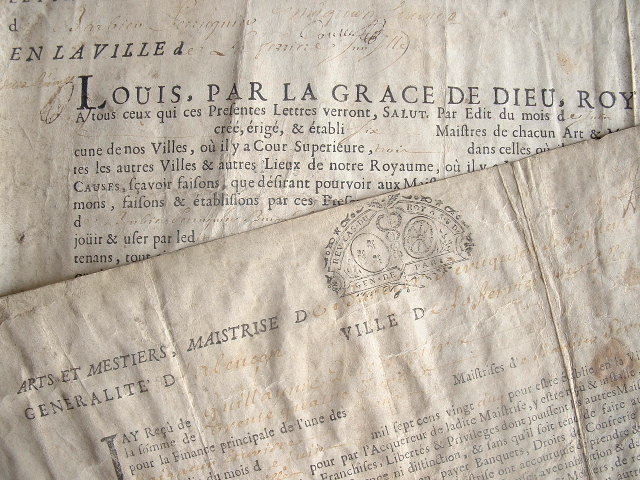 Lettres de maîtrise de barbier perruquier baigneur étuviste pour Guillaume Ducorizier, l'autorisant à s'établir dans la ville de La Ferrière-sur-Ille.