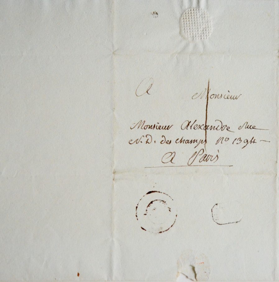 Encre brune sur feuillet double. Adresse au verso du second feuillet avec cachet et marques postales.
