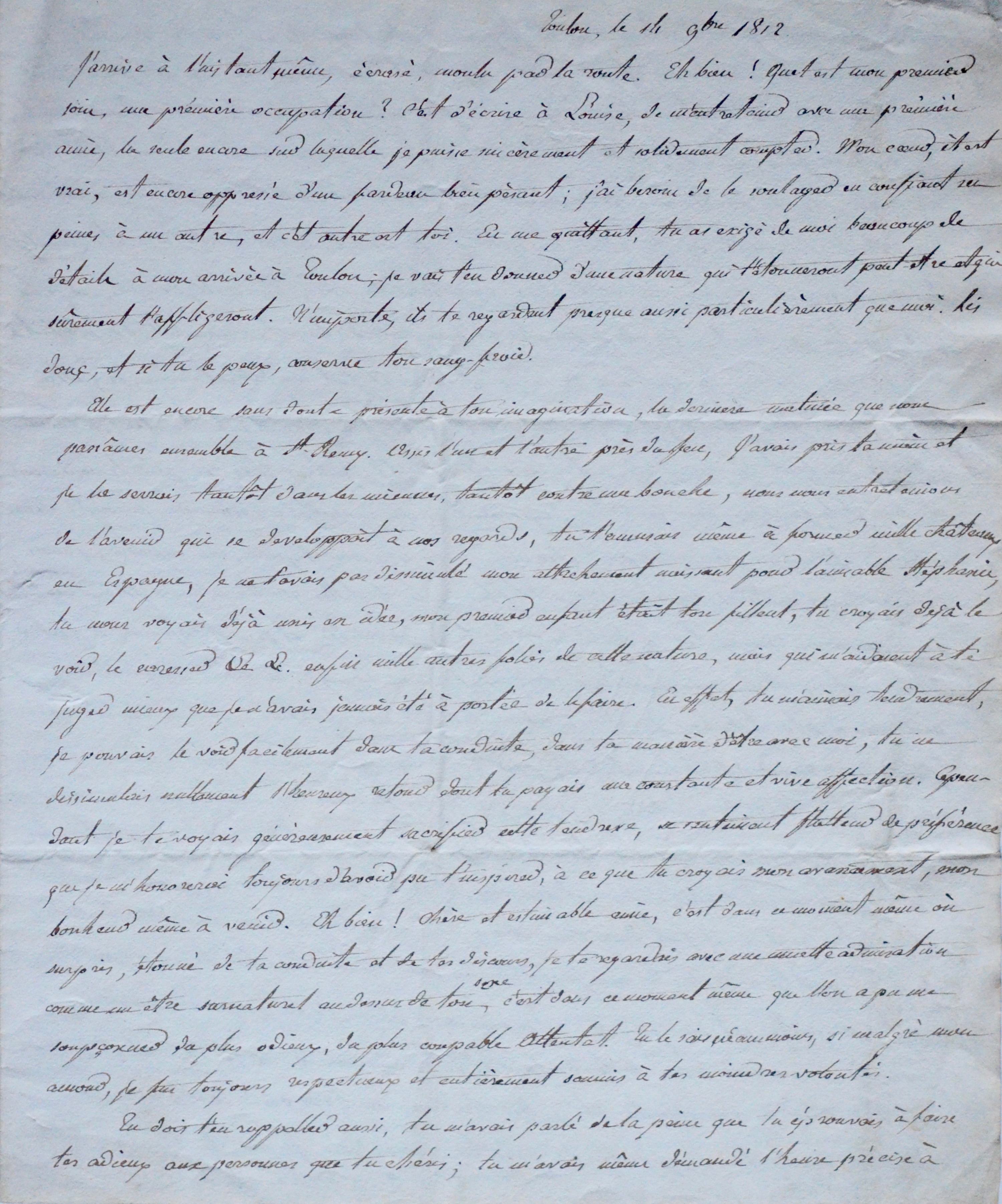 Jules Dumont d'Urville (Condé-sur-Noireau, 1790/1842)Dense lettre de Jules Dumont d’Urville adressée à sa cousine Louise de Croisilles.