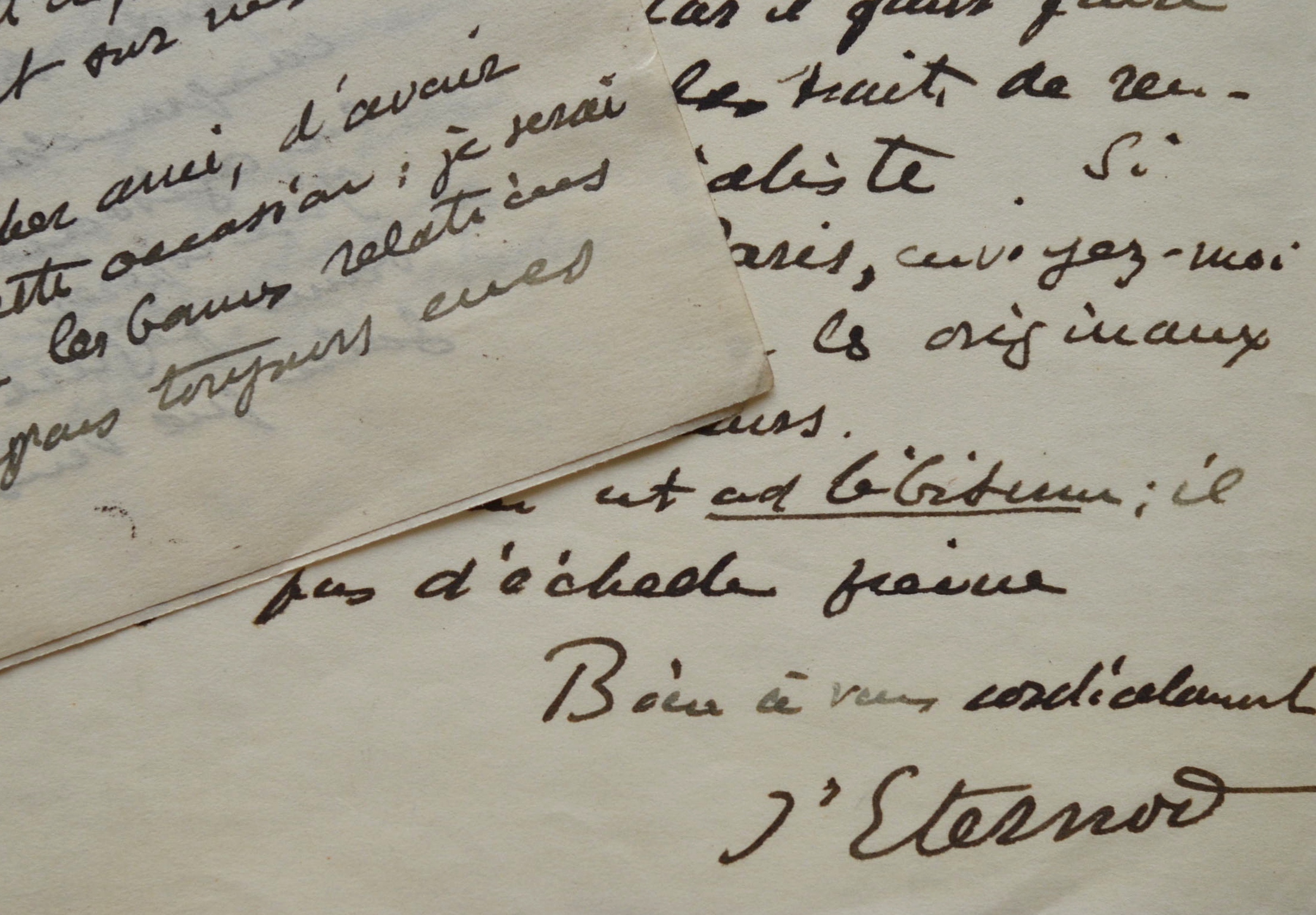 Dans ces deux lettres, Auguste d'Eternod soumet un article illustré à J.P. Langlois, successeur de Louis Olivier à la direction de la Revue générale des sciences pures et appliquées. Il peut faire graver les figures sur bois. Il se souvient avoir rencontré Louis Olivier avant la création de la revue ; ce dernier lui « avait demandé mon concours, qui, par des circonstances indépendantes de ma volonté, a été plutôt d'ordre platonique. » Il espère voir Langlois au Congrès de Londres : « J'irai là-bas à triple titre : 1) rapporteur dans la section d'anatomie 2) délégué de la Confédération suisse 3) délégué de l'Université et de la Faculté de médecine de Genève. »