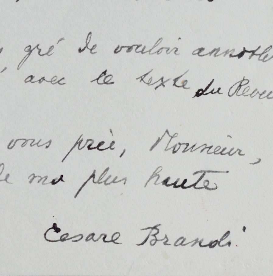 Cesare Brandi (Sienne, 1906/1988)Deux lettres de l'historien de l'Art italien Cesare Brandi, adressées à Henry Charpentier.