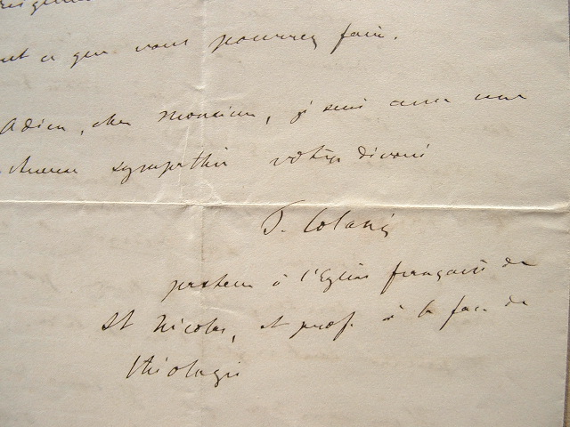 Le pasteur Timothée Colani, très inquiet pour une femme de Sainte-Marie-aux-Mines, partie avec sa fille en Algérie travailler chez un propriétaire à Shénovah, près de Marengo, demande l'aide et l'assistance de son correspondant, installé à Alger, pour l'accueil et le rapatriement des deux femmes. Il envisage même leur enlèvement si elles ne donnent pas signe de vie rapidement.