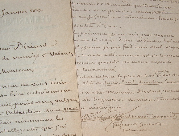 Correspondance de Joseph-Ferdinand Bernard, ténor et inventeur de la gymnastique pulmonaire [sa Gymnastique pulmonaire, ou l'Art de respirer pour chanter, parler et vivre, connut 6 éditions, de 1868 à 1899]. Il fait part de ses difficultés financières, de l'organisation d'un concert de charité à son profit, et du développement de sa méthode. «Vous verrez d'après ce prospectus que j'ai continué mes recherches sur le perfectionnement des organes de la respiration. J'ai fait une souscription pour m'aider dans mes travaux. Je me suis adressé à tous mes fervents amis et connaissances. Je vous ai mis au nombre et j'espère que vous voudrez bien m'envoyer votre souscription corroborant ainsi à la réussite de ma 5me édition, qui paraîtra vers la fin de cette année ou le commencement de l'autre. L'ouvrage aura 200 pages avec planches [...]».
